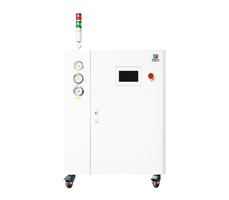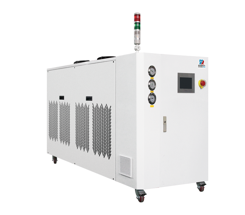 冷热一体模温机主要用于锂电池浆料搅拌的控温,可 以很好地解决现有的锂离子电池电极浆料生产过程中 温度不可控现象,保证水温均匀稳定。冷热一体机的循 环管道连接正负极搅拌浆料桶,通过水循环对正负极 搅拌浆料桶内浆料降温,使得正负极搅拌浆料桶内浆 料温度可控制在恒定在工艺范围值内,保证了浆料粘 度的稳定性,降低对后续极片涂布影响,提高极片涂布 生产效率、合格率、产品质量,降低了工时费。