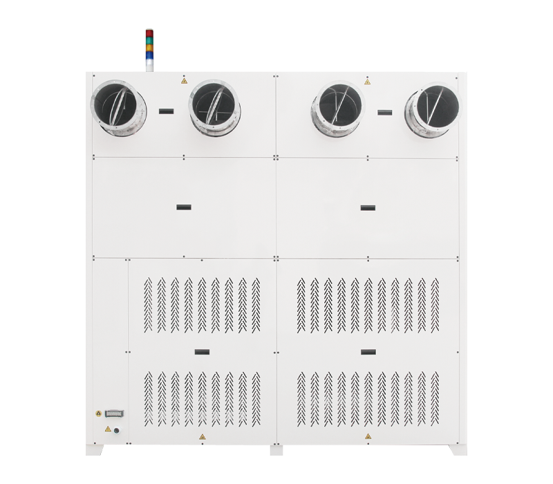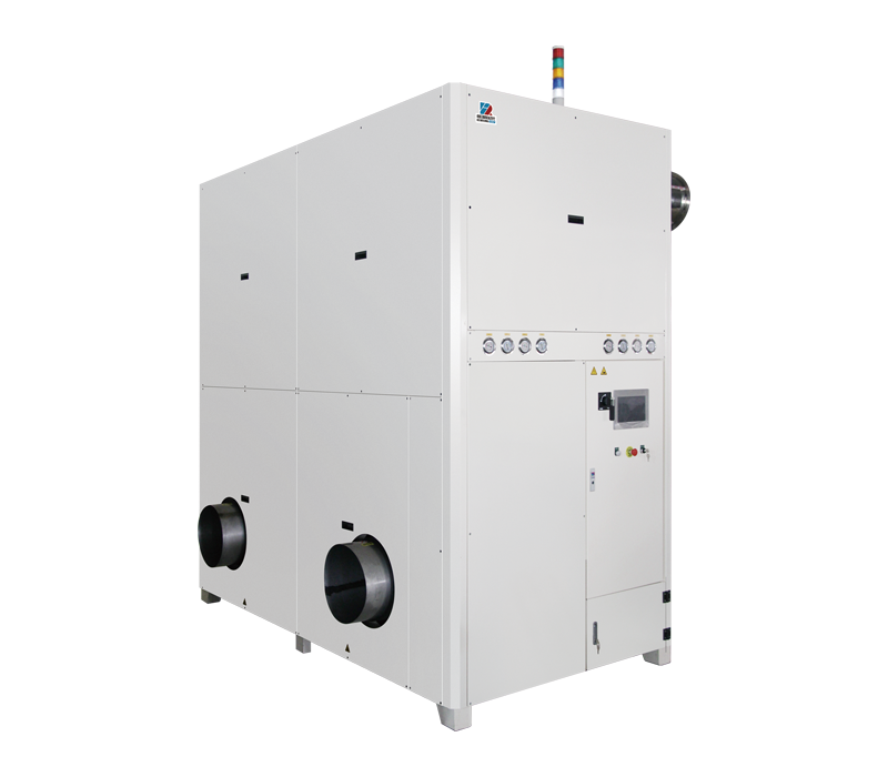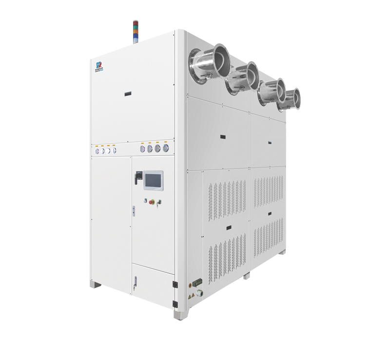 本设备用于真空干燥后方壳铝电池的冷却,主要由结构件、制冷系统、热交换系统、水系统和智能控制系统组成。设备可实现干燥房内干燥空气的自动循环,具有换热降温、空气过滤功能,还可对温度、湿度和流量检测,令室内环境舒适,含氧量高,空气清新,机械节能环保,可以迅速降温、通风、换气、除味、防尘等特点。提高工人效率、省电、减少投资(相对中央空调)、安装快、方便维修等优势。